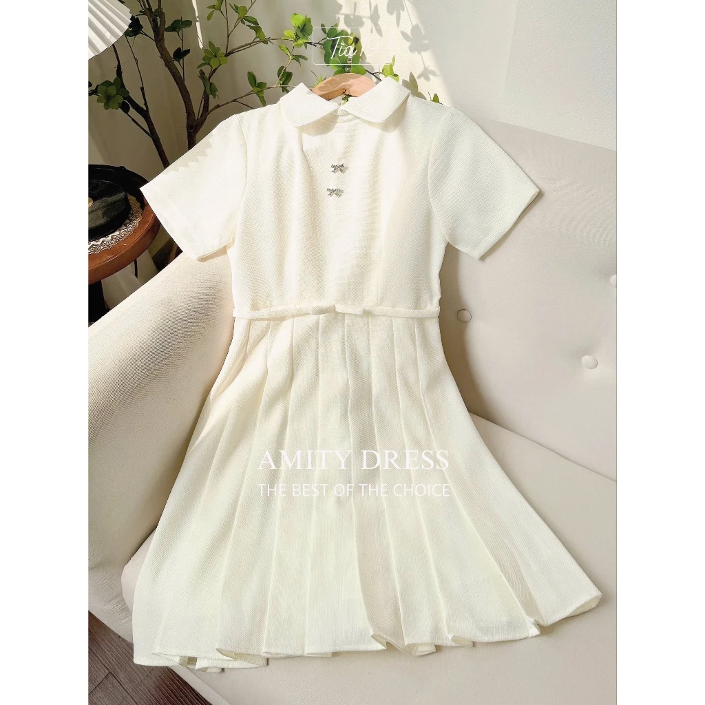 Tên sản phẩm: Váy cổ somi xếp ly thiết kế Amity Dress (Không kèm nơ cài)