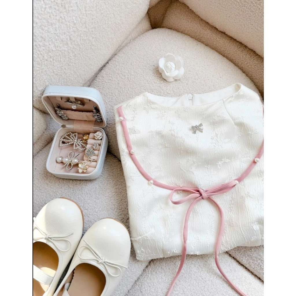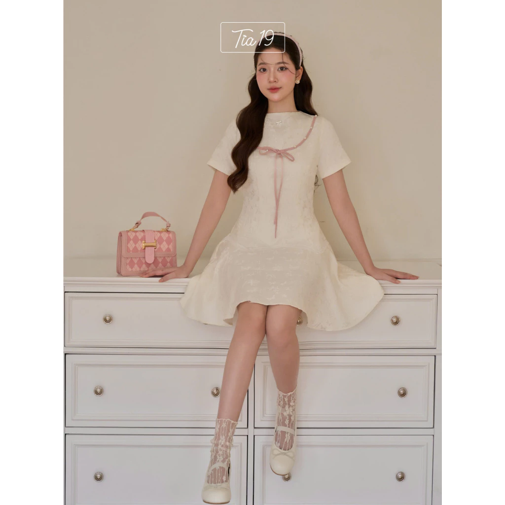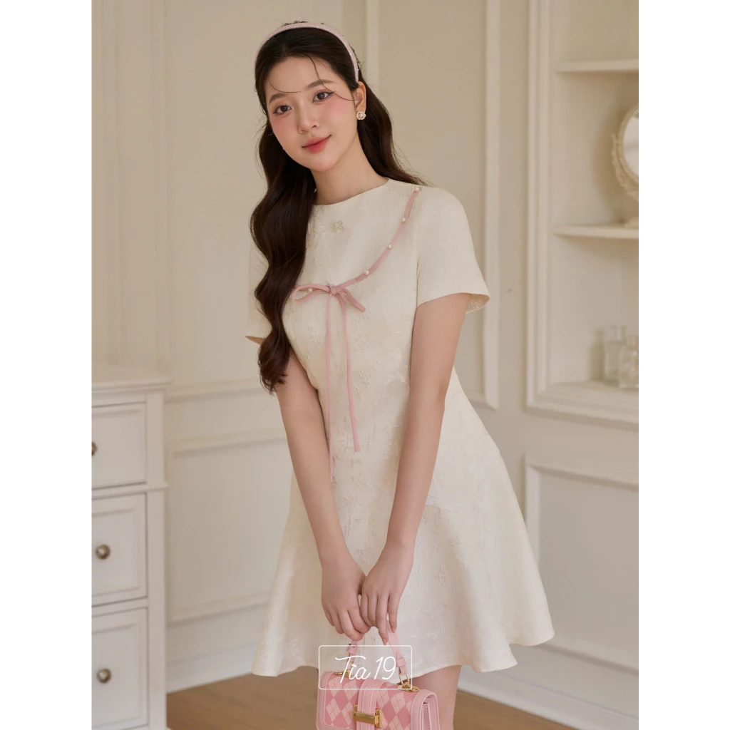 Tên sản phẩm: Váy gấm trắng thiết kế Ellen Dress (Không kèm nơ)