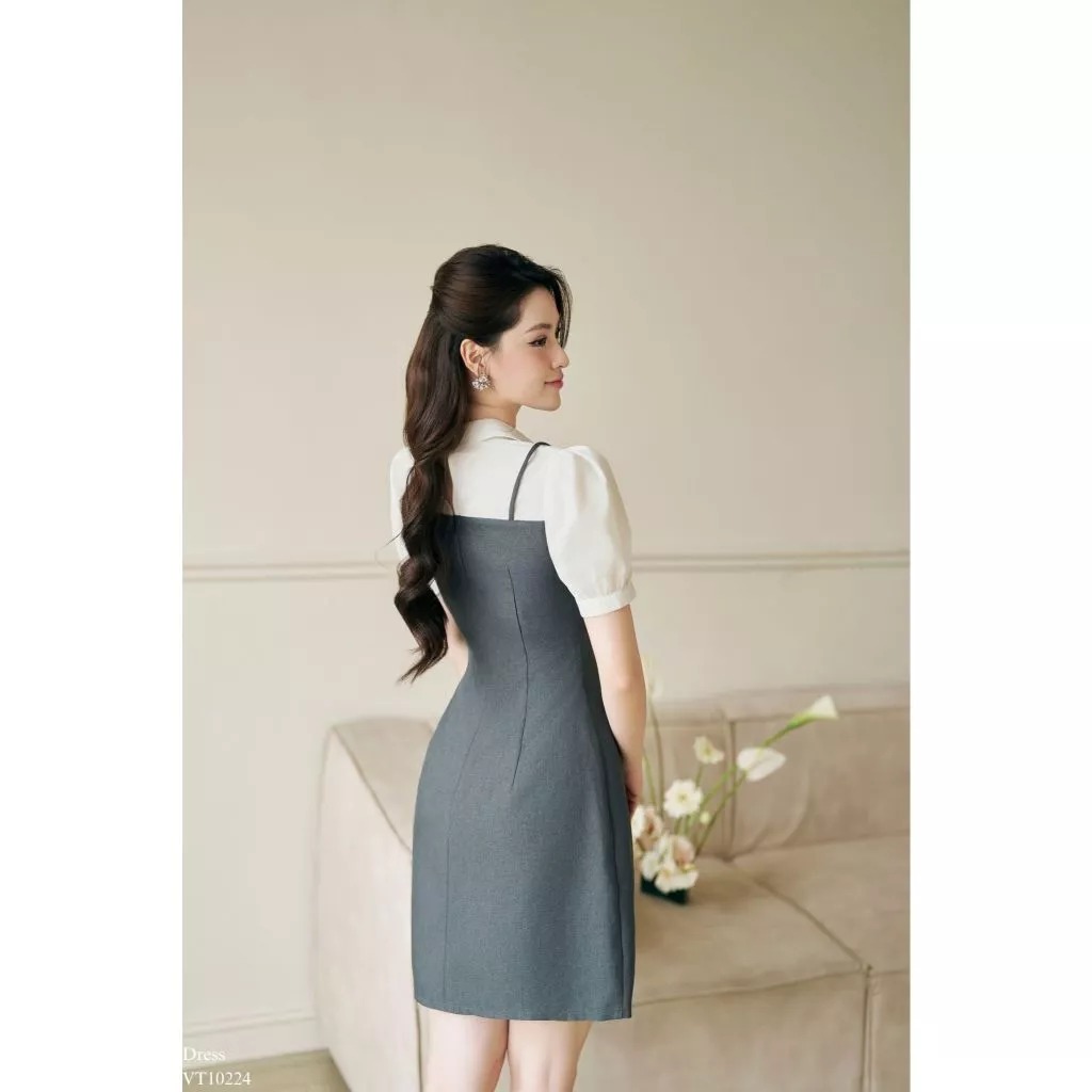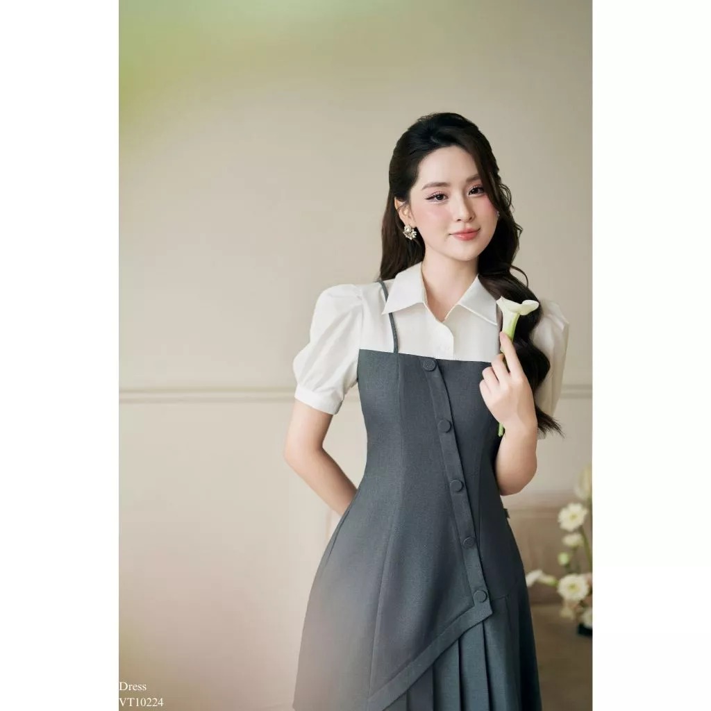 Váy nữ phối cổ đức thân đáp chéo chân xếp ly thiết kế nữ tính thanh lịch Tia19 Store