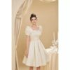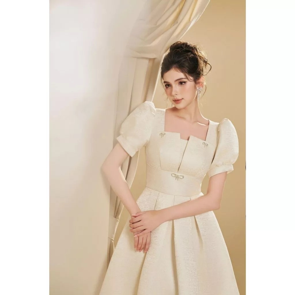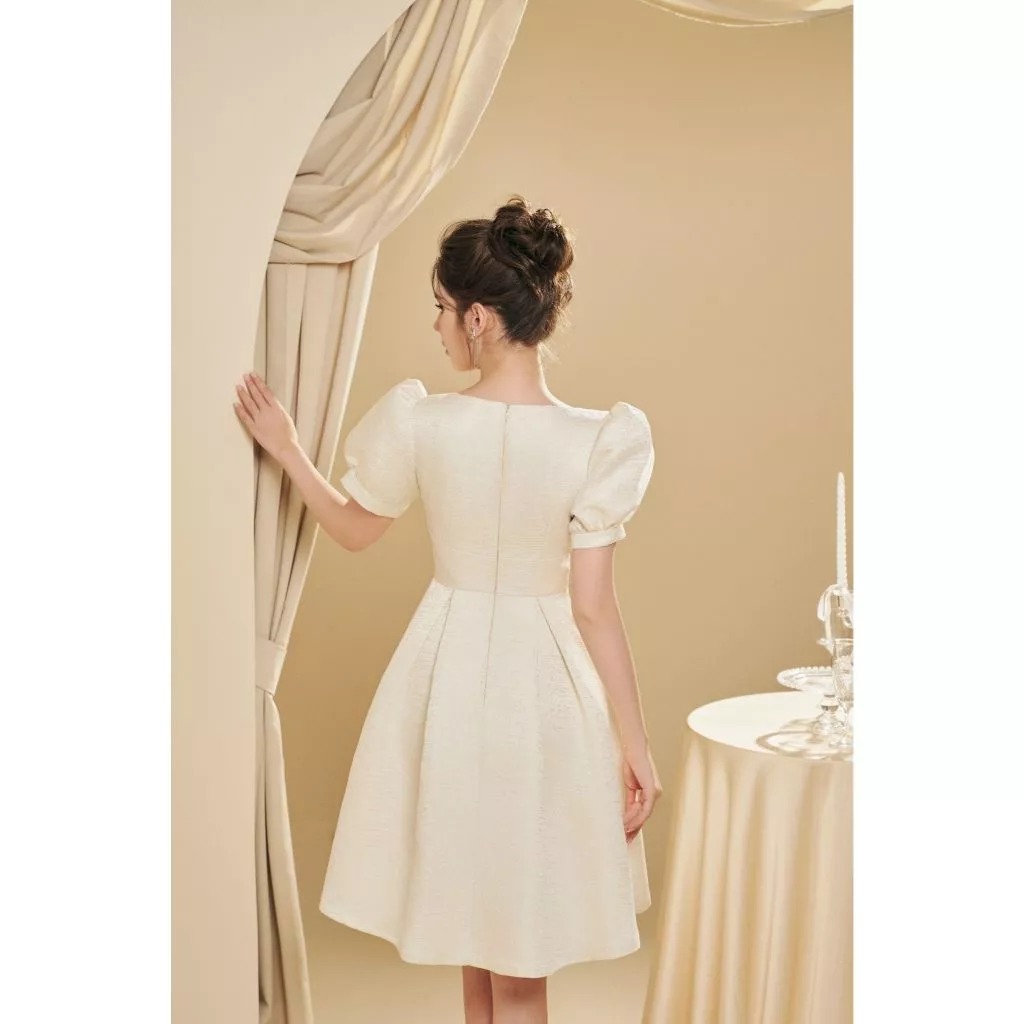 Váy thiết kế nữ cổ vuông cúp đáp xẻ V đính nơ đá đi tiệc Tia19 Store