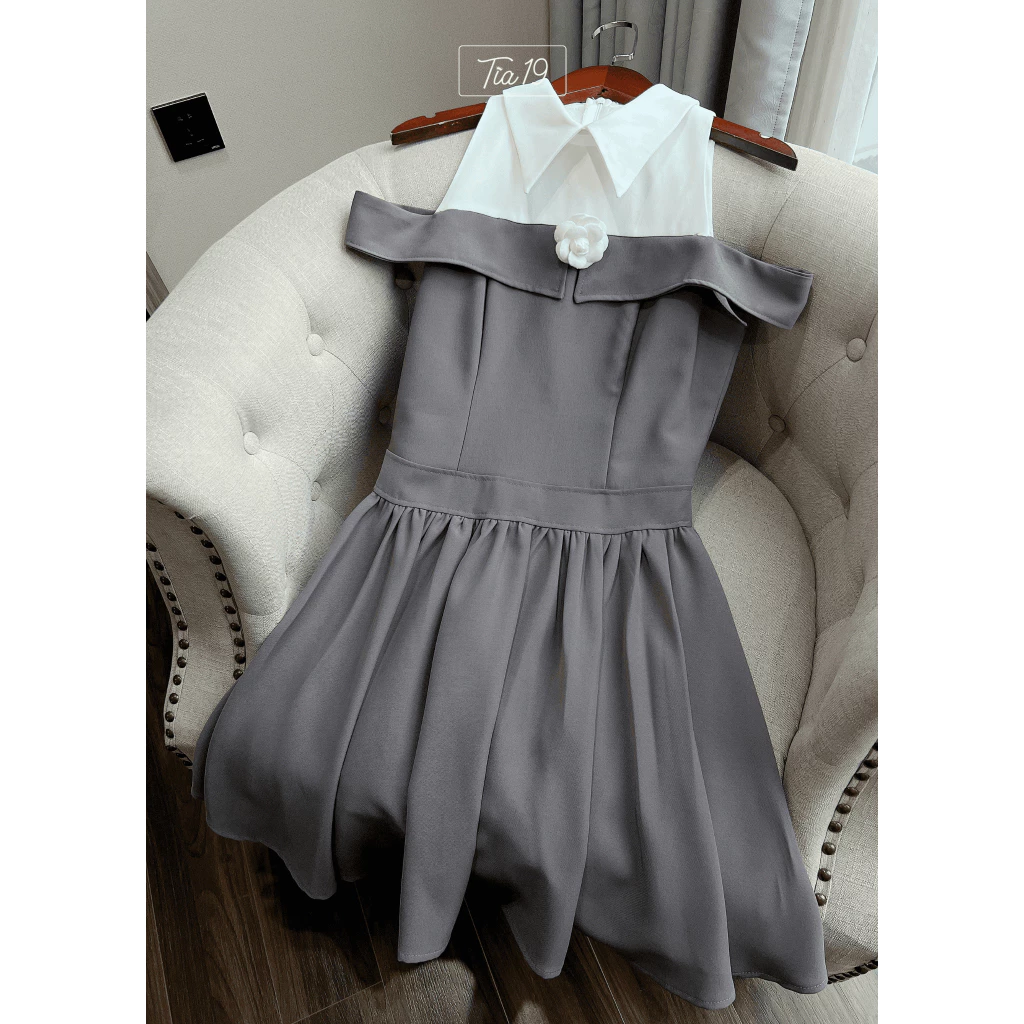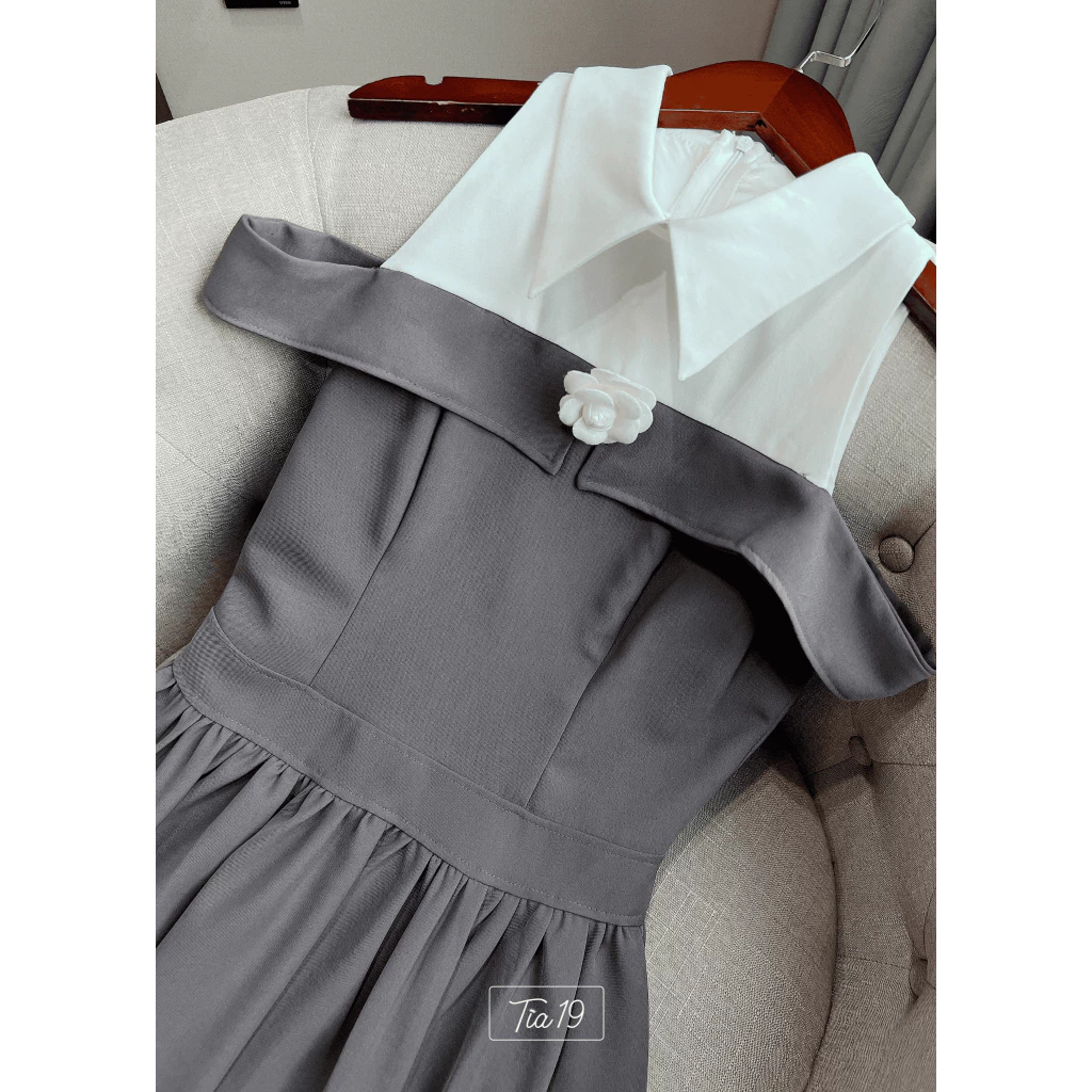 Tên sản phẩm: Váy xám cổ yếm thiết kế Nancy Dress (Không kèm nơ)